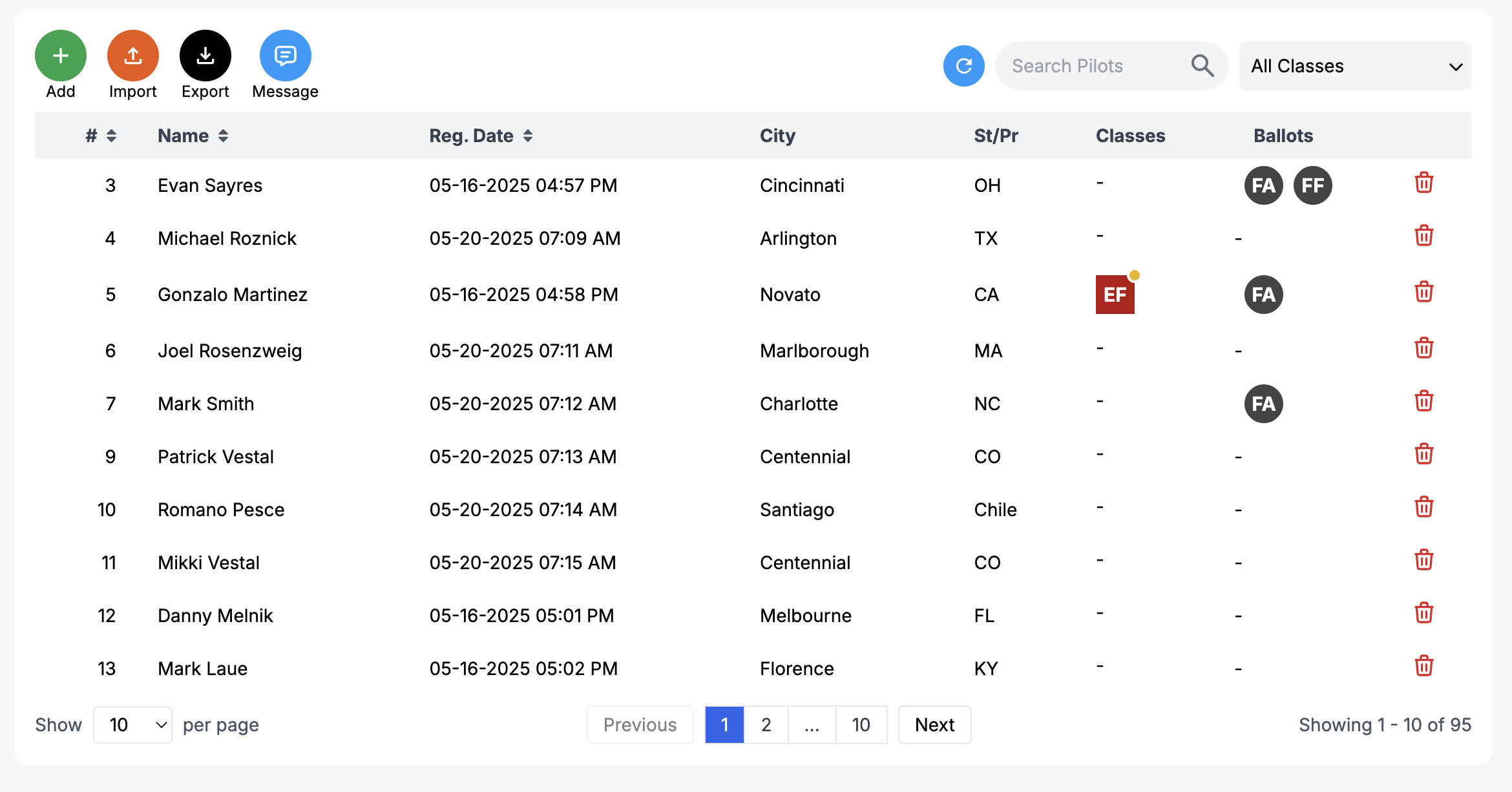 You can communicate with your contestants right from the contestant list! Message one or more whenever you want!