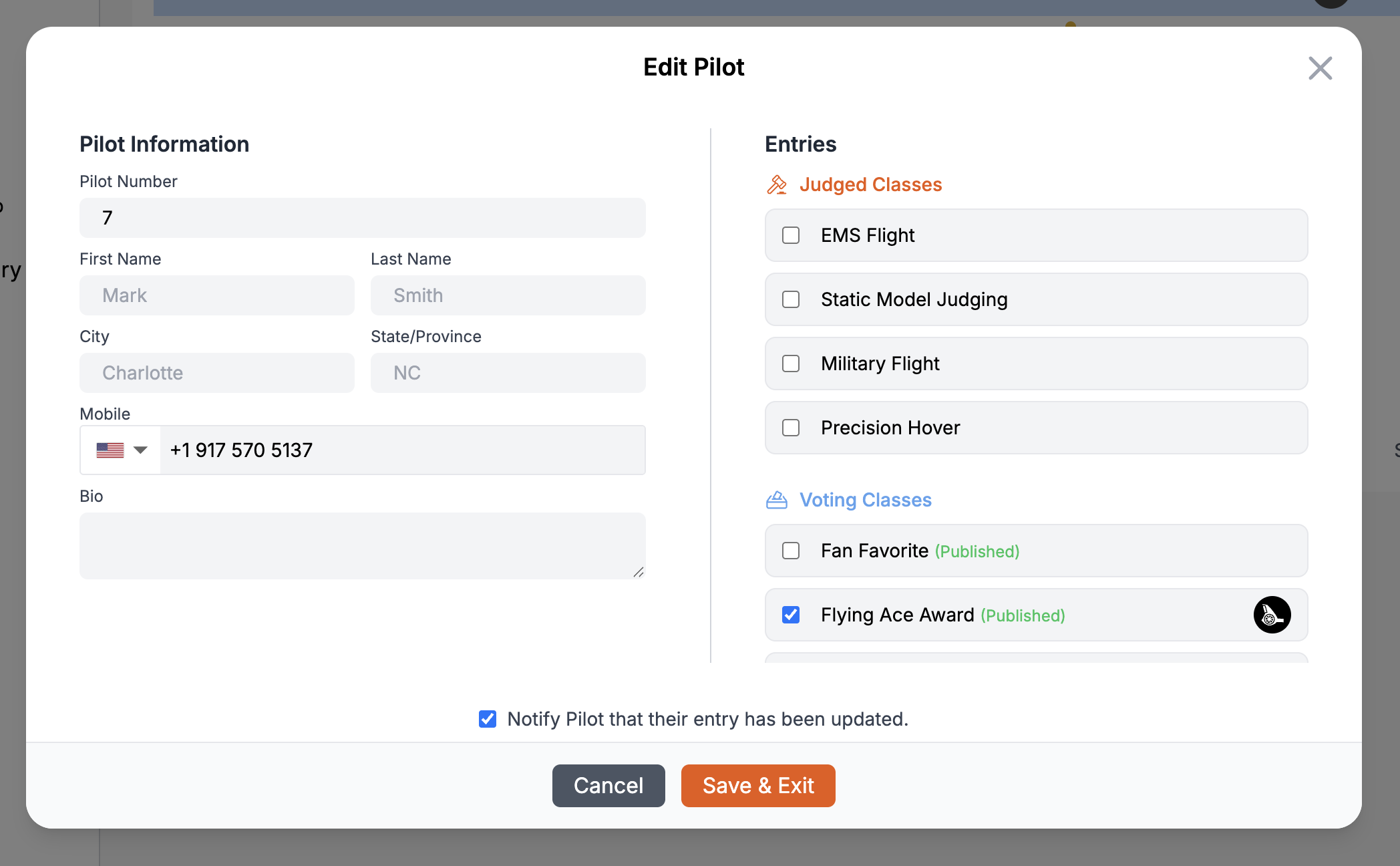 When you import or manually add a new contestant to an event, you can opt for them to receive a text message indicating as much. They are free to access the LiveJudge app via their mobile device and make changes to their personal profile, avatar, entries and class participation (if you allow that).