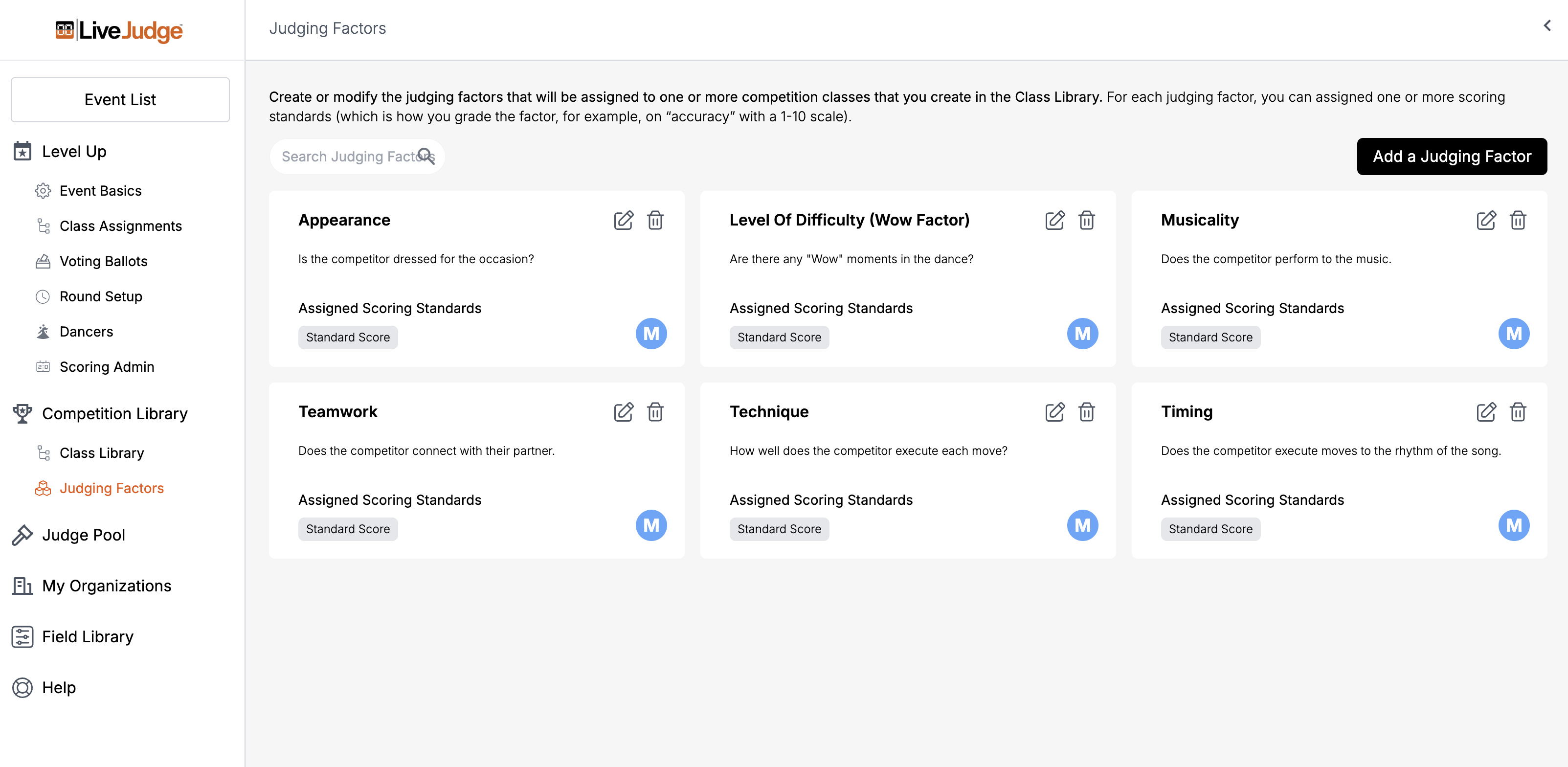 Judging Factors & Standards
